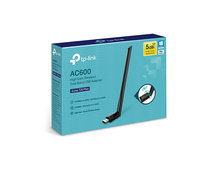 Archer T2U Plus has one 5dBi high-gain external antenna to ensure stronger signal transmission and reception. Enjoy a stable Wi-Fi connection throughout your home.