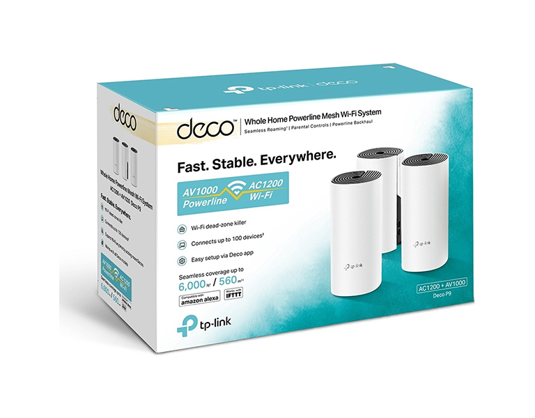 Deco P9 combines dual-band Wi-Fi and powerline to establish a stronger mesh network.