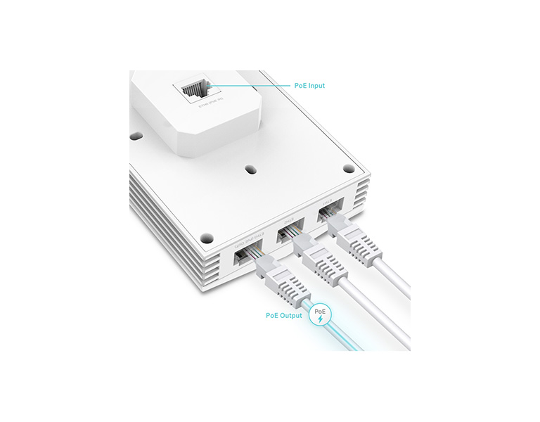 | • Blazing-Fast AX3000 WiFi 6 Speeds:: Simultaneous 574 Mbps on 2.4 GHz and 2402 Mbps on 5 GHz totals 2976 Mbps WiFi speeds.† • Higher Network Efficiency: Deliver data to more devices at the same time with less lag.‡ • Complete In-Room WiFi Coverage: Guaranteed strong signals and corner-to-corner WiFi coverage. • Multiple Gigabit Ports: Connect multiple devices with three downlink gigabit ports, one with PoE pass-through. • Centralized Cloud Management: Integrates into Omada SDN for cloud access and remote management. • Secure Guest Network: Implement multiple authentication options (SMS/Facebook Wi-Fi/ Voucher) packed with high-quality wireless security technologies.§ • Easy Installation and PoE Support: Easy-to-install design, compatible with 86 mm & EU & US standard junction box, and 802.3af/at PoE support. |