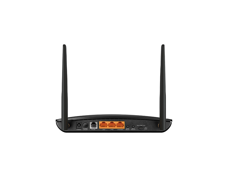 | Ports | 1× 10/100 Mbps LAN/WAN Port, 2× 10/100 Mbps LAN Ports, 1× Phone Port, 1 Nano SIM Card Slot |