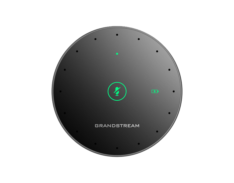 The GMD1208 is an extension microphone companion device for Grandstream’s GVC3220 Ultra HD Multimedia Conferencing System to increase the overall audio coverage range. This desktop wireless microphone includes integrated Bluetooth allowing it to also be paired with Bluetooth devices to provide HD voice quality. With ultrasound pairing, long talk time, proprietary 2.4G/BT dual mode and error-resilient transmission, the GMD1208 brings mobility and flexibility for an easy and powerful conferencing solution. Thanks to the dynamic beamforming technology, 8 omni-directional microphones can efficiently choose from up to 24 beam directions, covering 360-degree full band quality voice pickup within a radius of 5-meters for the best user experience. The multi-functional touch key on this device can trigger various functions with different operations and includes an LED indicator for status notifications. These user friendly features make GMD1208 an ideal choice for organizations that need optimal microphone placements with ultra-wide room coverage and crystal-clear audio quality.
